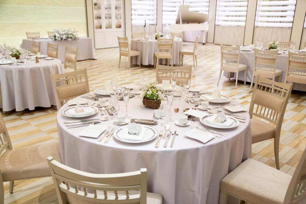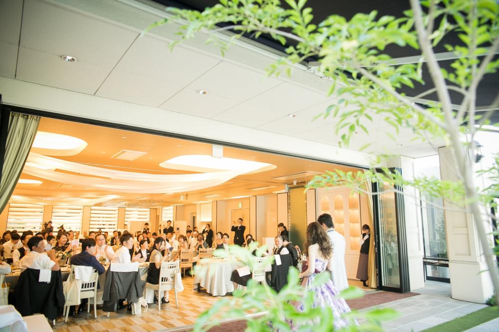 開放的な空間で思わず話しが弾む瞬間。パーティー会場はシンプルでモダンなデザインが老若男女問わず、幅広いゲストから人気。